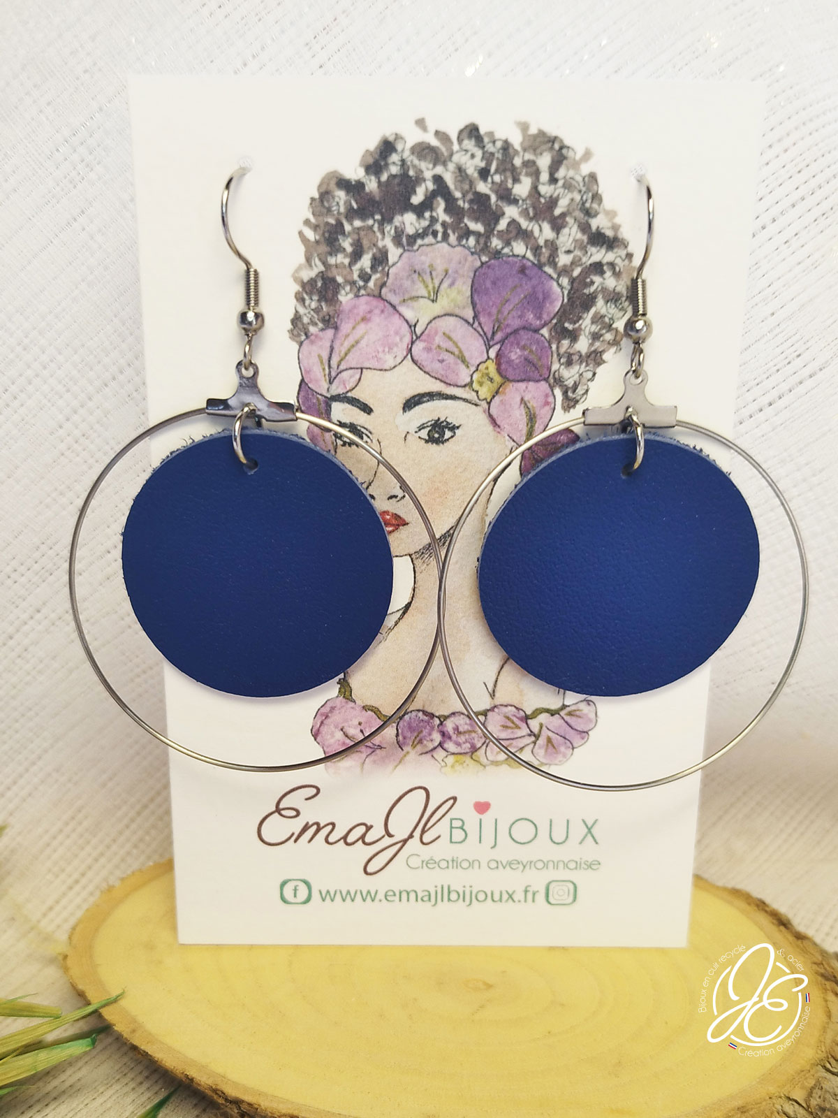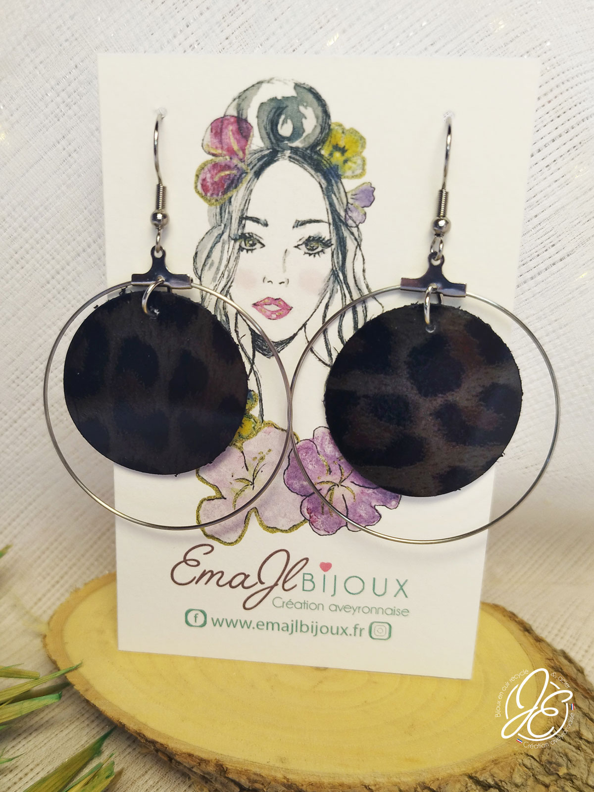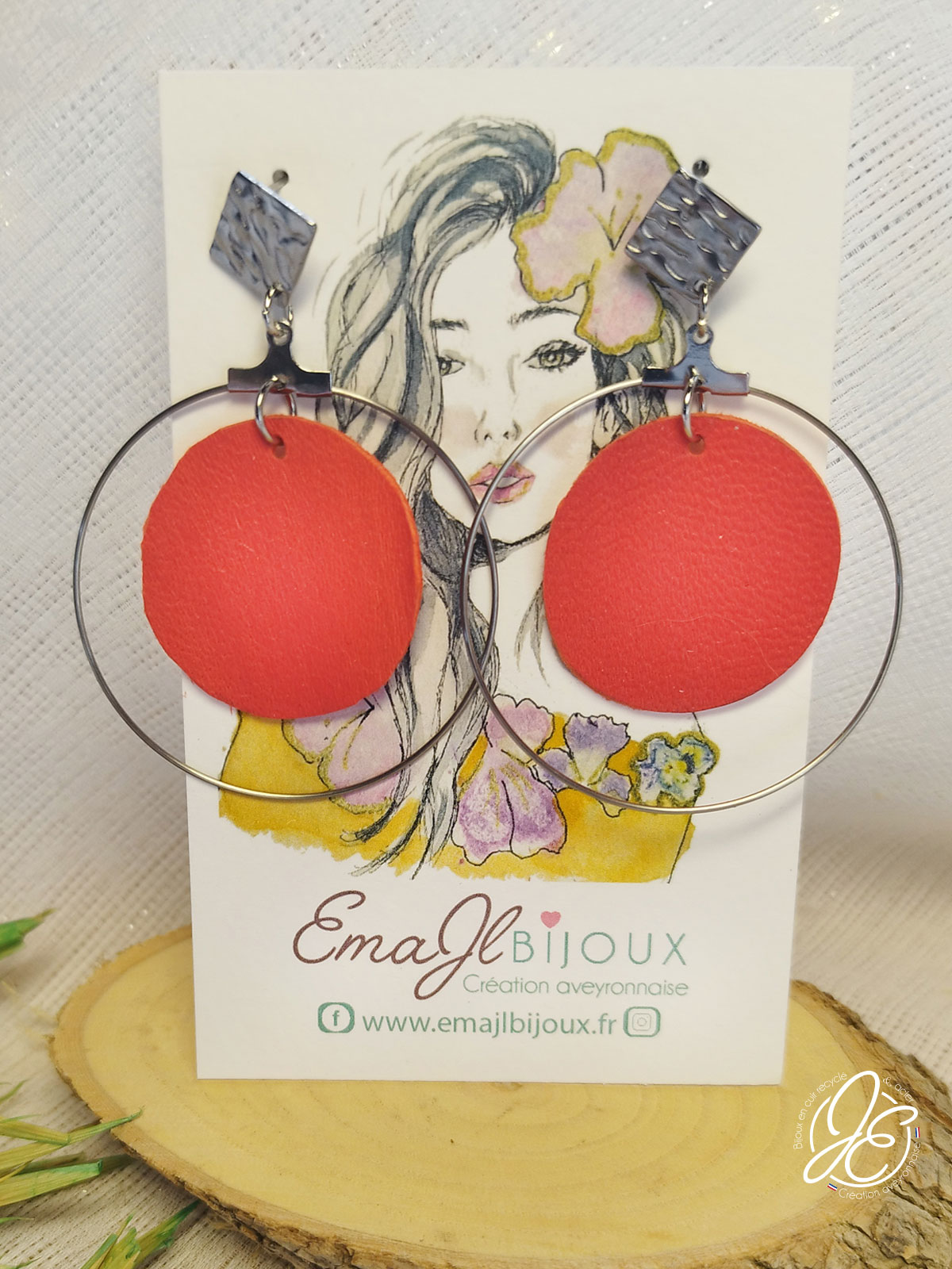 Boucles d’oreilles Créoles d’Éclipse en cuir recyclé et acier inoxydable argenté